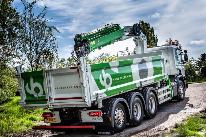 De Van Boekel Groep uit Zeeland had een speciale wens bij de aanschaf van de nieuwe vrachtwagen. Een grote laadbak met een tweezijdige klep zodat er breder materiaal kon worden geladen. Bofram Techniek heeft deze prachtige vrachtwagenopbouw met Atlas autolaadkraan gerealiseerd in samenwerking met Scania Veghel. Het betreft een Scania Tridem 8×4 en een Atlas autolaadkraan 332.3E|A5 Ton meter kraan met een 14,5 meter gieklengte die is voorzien van extra functies.